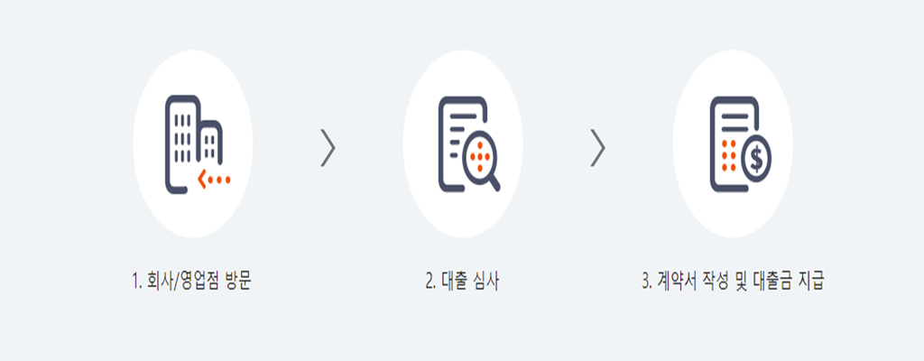 방문 대출 같은 경우 회사 또는 영업점에 직접 방문하여 대출 심사를 받으신 후 계약서 작성 후 대출금을 지급받을 수 있습니다.